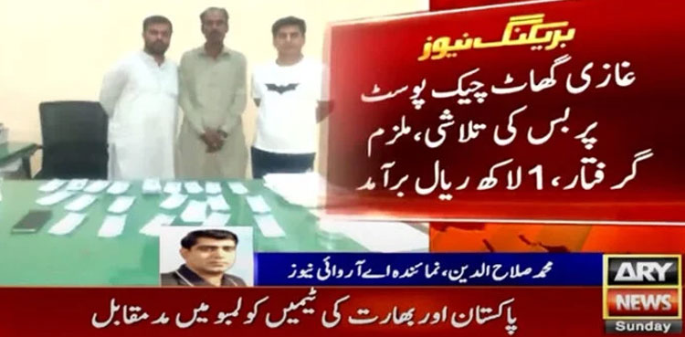 The suspect was travelling to Quetta and the raiding team recovered 100,000 Saudi riyal from his possession after checking the passenger bus.