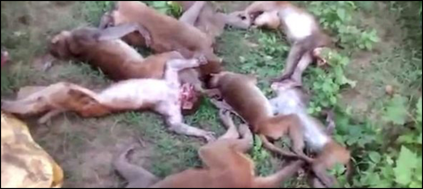 UTTAR PRADESH: At least a dozen monkeys were ‘scared to death’ after they suffered simultaneous heart attacks when they got a fright – from a roaring tiger, according to a report in the Mirror UK.