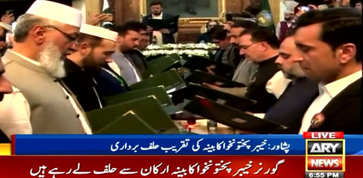 PESHAWAR: The 15-member cabinet of Khyber Pakhtunkhwa (KP) took oath at a ceremony held in the Governor House in KP, ARY News reported on Wednesday.