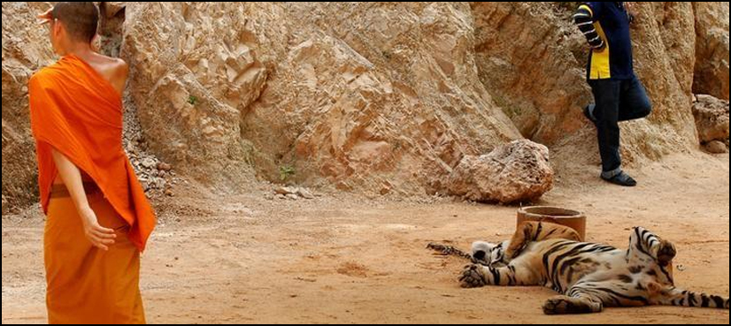 The Buddhist temple in Kanchanaburi province west of Bangkok had become a tourist destination where visitors snapped selfies with bottle-fed cubs.