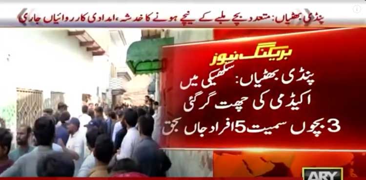 PINDI BHATTIAΝ: At least seven people, including five children, lost their lives and several others were injured when the roof of a private academy collapsed in Sukheke town near Pindi Bhattian on Saturday, ARY News reported.