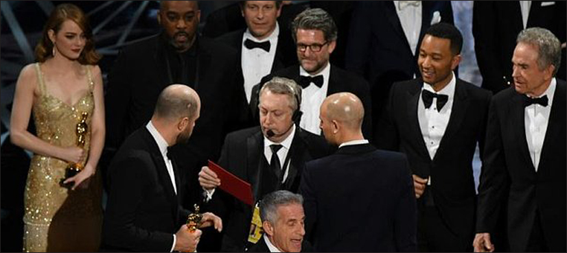 The screw-up marked the most embarrassing mistake in Oscars history, with the musical “La La Land” briefly declared the winner for best picture before organizers realized the flub.