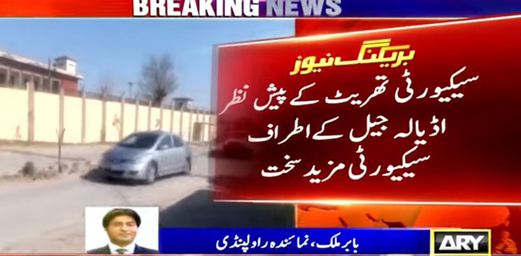 RAWALPINDI: Security has been further beefed up around Adiala jail here owing to serious security threat, ARY News reported on Saturday.