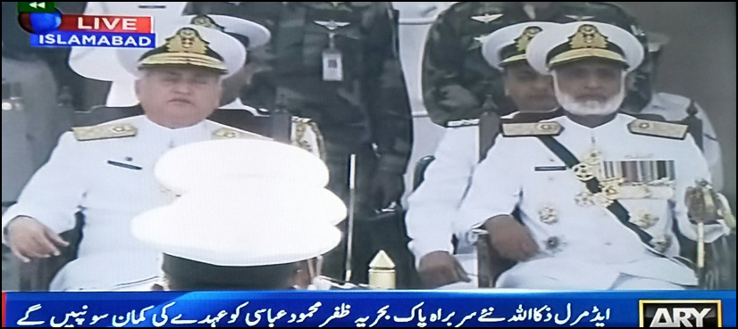 Admiral Zakaullah handed over the command of the navy to his successor Admiral Abbasi at a ceremony held at the Naval Headquarters in Islamabad.