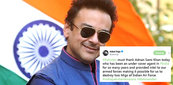 #Pakistan must thank Adnan Sami Khan today who has been an under-cover agent in #India for so many years and provided intel to our armed forces making it possible for us to destroy two Migs of Indian Air Force #indiapakistantensions #Abhinandan pic.twitter.com/pfgcLRsKX4