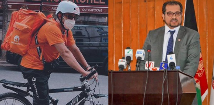 The photos of Afghanistan’s former minister of communications and technology Syed Ahmad Shah Sadat were posted by Al-Jazeera Arabia on Twitter who is now working as a pizza delivery person in Germany.