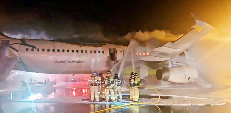 The fire, which began on Jan. 28 while preparing for departure to Hong Kong, was first detected by a flight attendant in an overhead luggage bin in the rear left-hand side of the plane, Air Busan has said. All on board were evacuated safely.