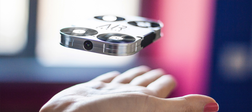 Place the drone on your palm and launch it in the air from your phone using the AirSelfie app available for iOS and Adnroid.