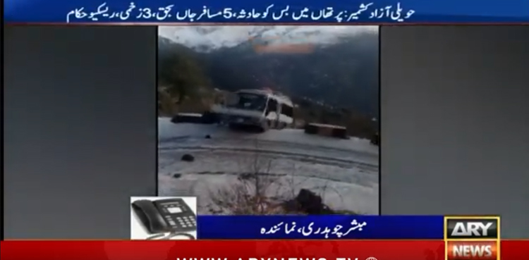 AJK: At least five passengers lost their live, whereas four others sustained injuries as vehicle plunged into gorge in Haveli Azad Kashmir, ARY News reported.