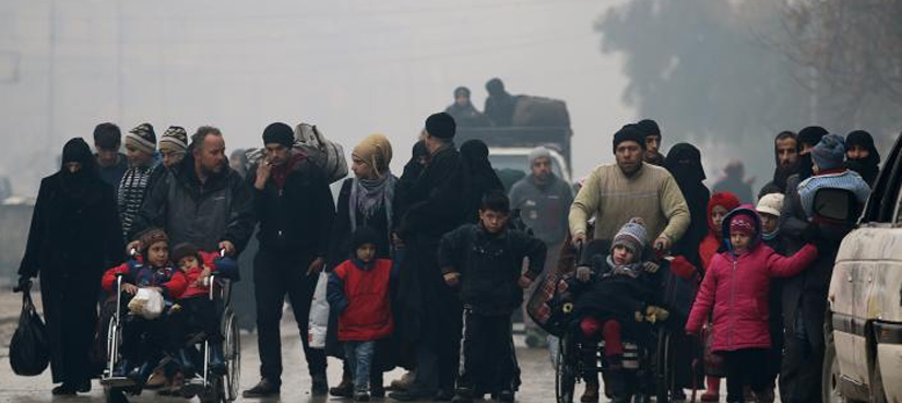 The evacuation was the culmination of two weeks of rapid advances by the Syrian army and its allies that drove insurgents back into an ever-smaller pocket of the city under intense air strikes and artillery fire.