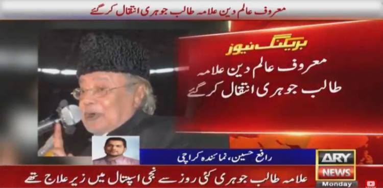 KARACHI: Prominent religious scholar Allama Talib Jauhari passed away in Karachi on Sunday, ARY News reported.