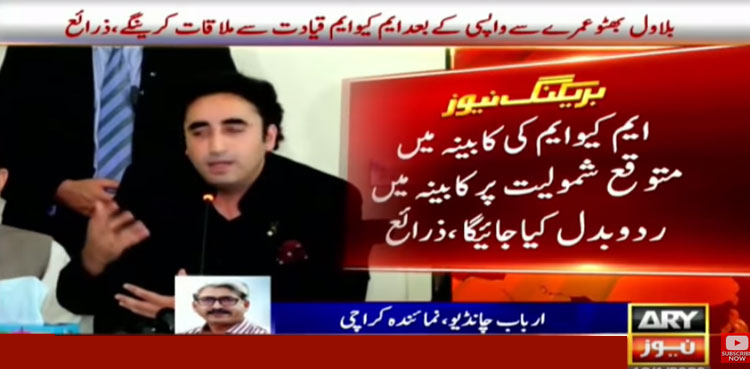 In a relevant development, sources told ARY News that Pakistan People’s Party (PPP) Chairman Bilawal Bhutto Zardari will likely meet the MQM-P leadership upon return from Saudi Arabia after performing Umrah.
