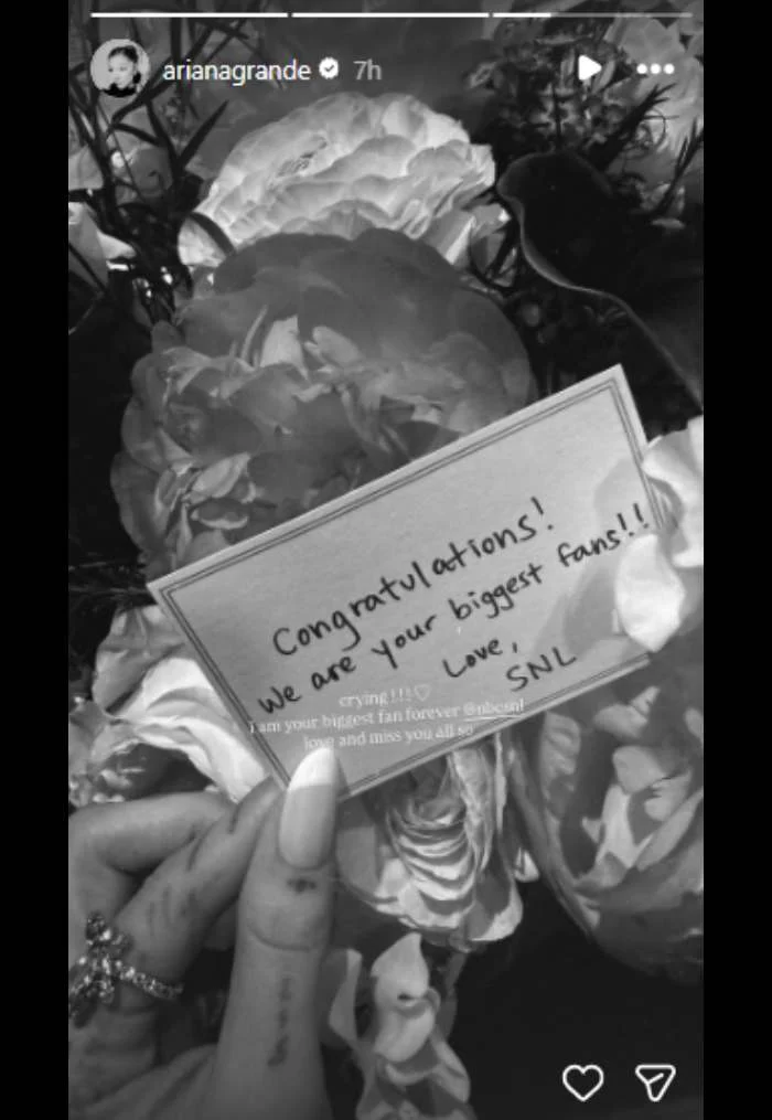 The “Everyday” singer was visibly moved by the gesture. Sharing a photo of the card, she wrote, “Crying!!! I am your biggest fan forever @nbcsnl… love and miss you all so much.”