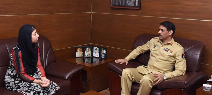 Samar Khan, who hails from Lower Dir district of Malakand division, called on the DG ISPR and apprised him of her efforts to promote a culture of sports amongst the youth especially girls and create awareness about climate change.