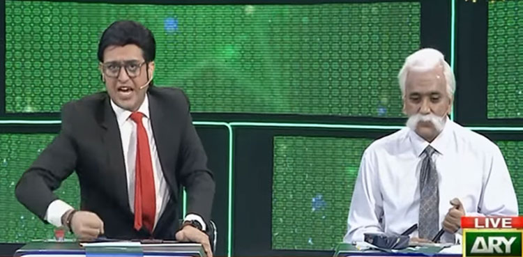 Dummy Arnab Goswami, who entered first, said that Indian forces have taken over Karachi and now he has also occupied ARY News studio and will now conduct his show from here, leaving the show host Waseem Badami and guests Zahid Ahmed, Javed Sheikh and Behroze Sabzwari in fits. It was a dig at Indian media’s marathon transmission wherein they falsely claimed capturing Karachi.