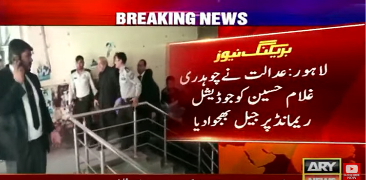 LAHORE: A district court in Lahore on Friday sent ARY News anchor Chaudhry Ghulam Hussain to jail on judicial remand in a case pertaining to alleged bank fraud, ARY News reported.