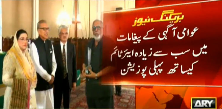 The president, during his speech, lauded the services rendered by ARY Digital Network, for public service messaging and handed over the first award to Chairman, ARY Digital Network, Haji Abdul Rauf.