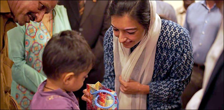 During the ceremony Aseefa Bhutto Zardari gave presents to children and conversed with their families, followed by a cake cutting ceremony to mark world polio day, and also and met people responsible for managing the polio programme in Sindh.