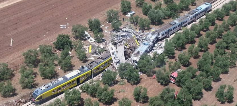 One of the four-carriage trains was supposed to have waited at a station for a green light before heading down the single track between the towns of Corato and Andria.