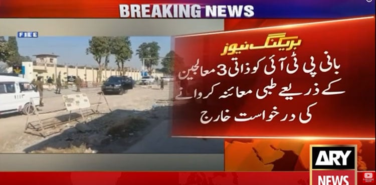 RAWALPINDI: An Anti-Terrorism Court (ATC) in Rawalpindi on Saturday rejected a plea filed by Pakistan Tehreek-e-Insaf (PTI) seeking permission for its founder and former prime minister Imran Khan to be examined by his personal doctors.