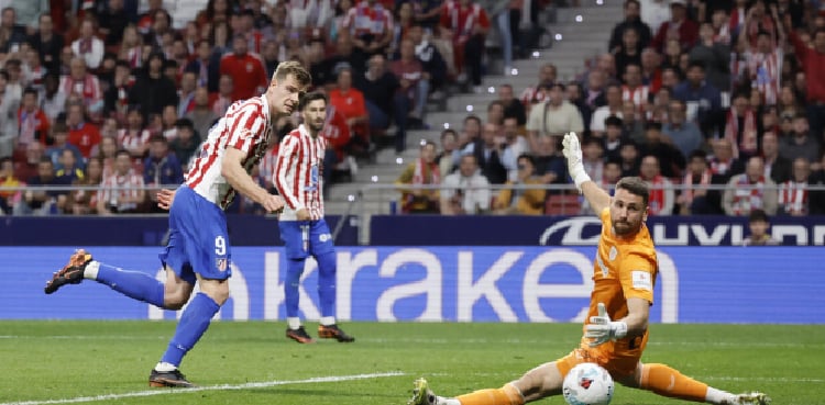 Sorloth extended Atletico’s lead in stoppage time which secured their win, as Gorka Guruzeta grabbed one back at the death.