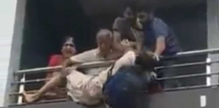 A man was thrashed while hanging for dear life from the first-floor balcony of a building in the Indian state of Karnataka, according to an Indian news agency report.