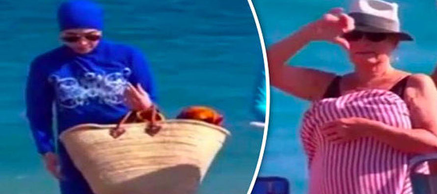 Footage broadcast Sunday evening showed local bathers make disparaging gestures towards Alshelh, who is sitting burkini-clad on the sand in Villeneuve-Loubet with her mother.