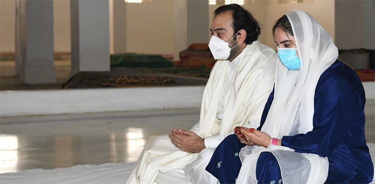 GARHI KHUDA BAKSH: Bakhtawar Bhutto Zardari Tuesday visited the mausoleum of the Bhutto family in Garhi Khuda Bakhsh along with her husband Mahmood Choudhary, days after tying the knot in a ceremony at Bilawal House Karachi, ARY NEWS reported.