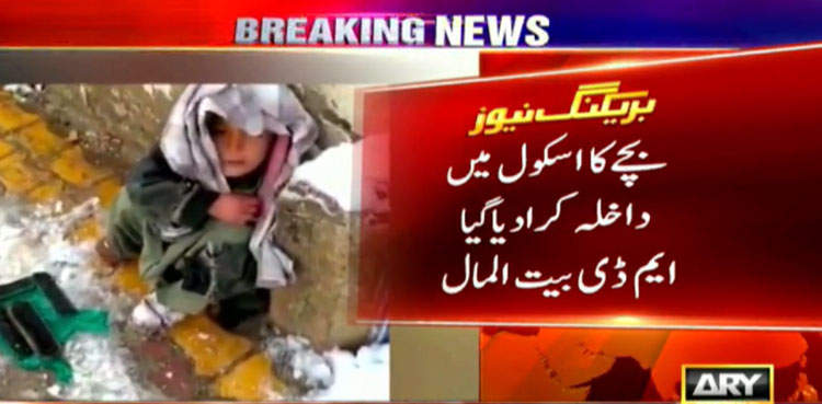 QUETTA: A minor boy, whose video went viral earlier this week showing him sitting beside a wall to polish shoes in a freezing temperature in Quetta, has been enrolled in a school, ARY News reported on Sunday.