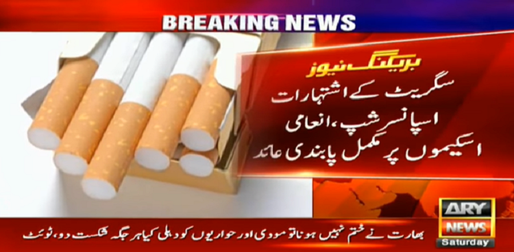 ISLAMABAD: The health ministry on Saturday has slapped ban over cigarette advertisement, sponsorship and prize schemes, ARY News reported.