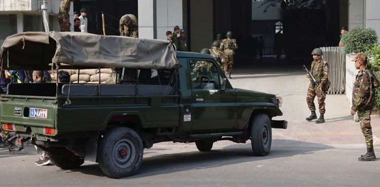 Soldiers travelled in armoured vehicles to temporary camps set up across the capital Dhaka to help the civil administration maintain peace and security.