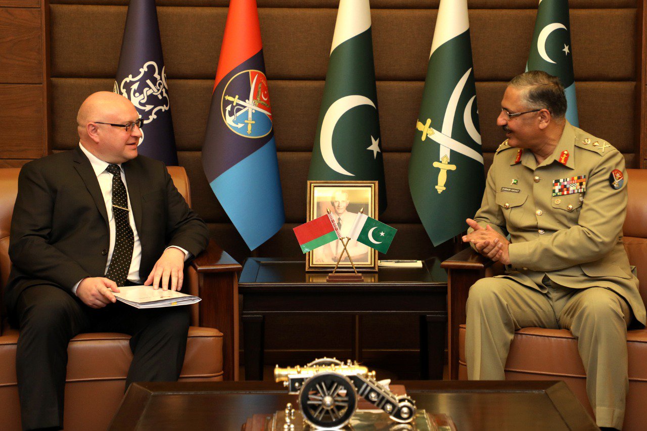 According to the statement, the ambassador Extraordinary and Plenipotentiary of the Republic of Belarus to Pakistan met with General Zubair Mahmood Hayat to discuss “matters related to regional dynamics”.