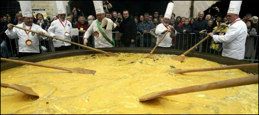 “I did not have any problem finding enough eggs, but the week has indeed been a bit different,” Benedicte Mathy, president of the local branch of the World Giant Omelette Brotherhood, told AFP yesterday.
