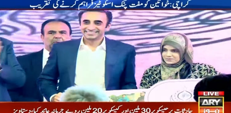 KARACHI: Pakistan People’s Party (PPP) Chairman Bilawal Bhutto Zardari on Thursday distributed free pink electric scooters to working women in Karachi, ARY News reported.