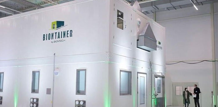 Germany’s BioNTech said on Wednesday it has completed construction of its first vaccine factory made from shipping containers called ‘BioNtrainer’ being sent to Africa.
