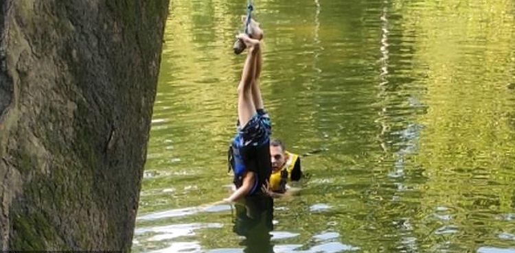 According to the details, the youngster was enjoying a rope swing at Patapsco Valley State Park in Maryland when he somehow flipped 180 degrees leaving him dangling with his head in the water.