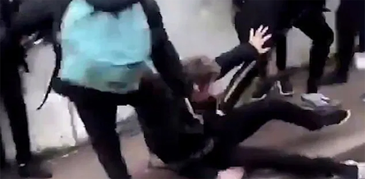 A video on Twitter shows the teenager being repeatedly kicked in the commuter town of Etampes, south of Paris.