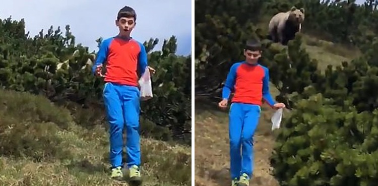 The boy, Alessandro Franzoi, faced the troublesome situation while hiking with his family near a village of Italy’s Sporminore when a wild bear emerged from bushes and started following him.