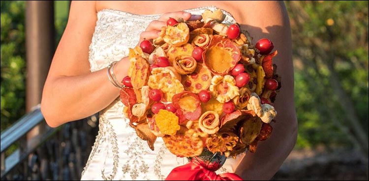 Brides now carrying pizza down the aisle instead of flowers bouquet
