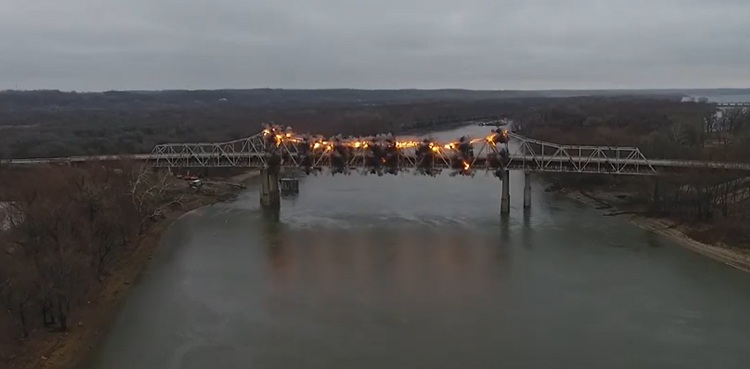 WATCH: Implosion of river bridge captured in drone footage