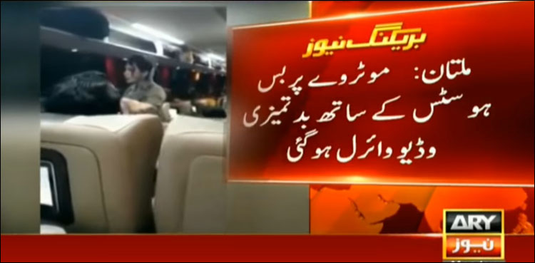 In the shocking video of the incident, seen by the ARY News, the bus hostess can be seen weeping after being harassed by the passenger.