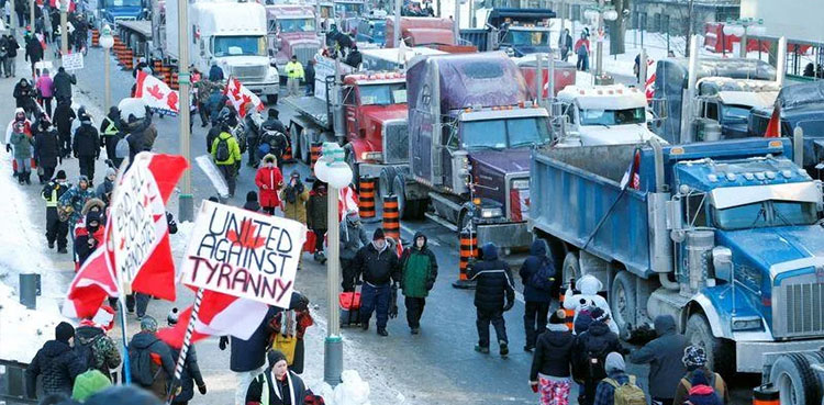 OTTAWA: Dozens of trucks and other vehicles blocked the downtown area of Ottawa for a second day after thousands descended on Canada’s capital city on Saturday to protest against Prime Minister Justin Trudeau and COVID-19 vaccine mandates.