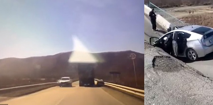 The vehicle trapped into the hole on the surface of the crumbling bridge while some officials can be seen entering the hole to inspect the car as the camera operator pans around to show what happened, DailyMail UK reported.