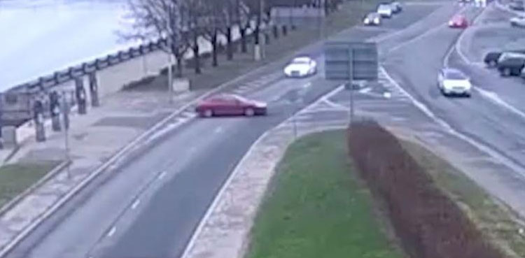 The video of an unoccupied car rolling across a road before plunging into a river by itself in Latvia is going viral across social media.