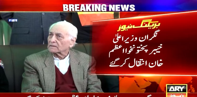 PESHAWAR: Caretaker Chief Minister of Khyber Pakhtunkhwa Muhammad Azam Khan passed away in Peshawar on Saturday, ARY News reported.