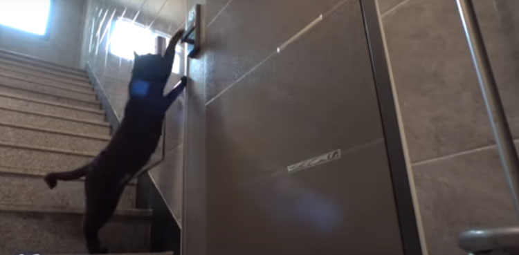 Once the husband let the stray cat inside the house after hearing the beep sound from the door lock. The cat even knows how to exit the building.