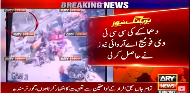 The footage obtained by the ARY NEWS showed an explosion in the building amid presence of a number of people in the nearby area. People could be seen running away from the incident site following the explosion.