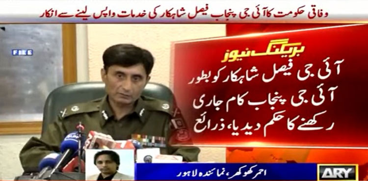 LAHORE: The federal government has refused to withdraw services of Punjab Inspector-General (IG) of Police Faisal Shahkar, ARY News reported on Tuesday, citing sources.