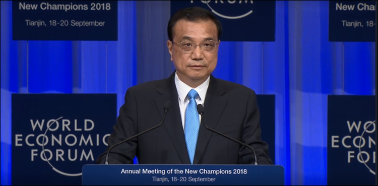 “It is essential that we uphold the basic principles of multilateralism and free trade,” Li said in his speech at the “summer Davos”.