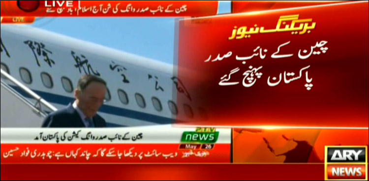 ISLAMABAD: Chinese Vice President Wang Qishan arrived in Islamabad on Sunday on a three-day official visit to Pakistan, ARY News reported.
